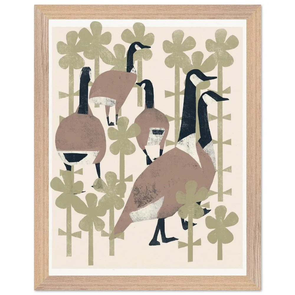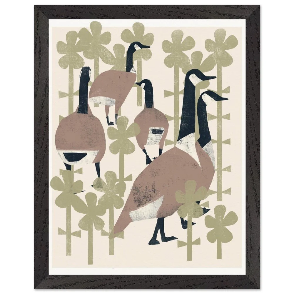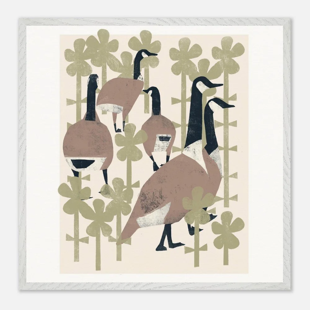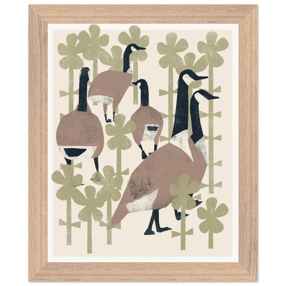 Geese In Flowers Premium Wooden Frmd Poster W/ Museum-Quality Matte Paper